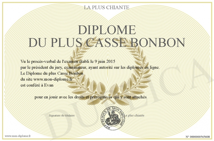 Envoyez par email votre Diplôme du plus Casse Bonbon personalisé