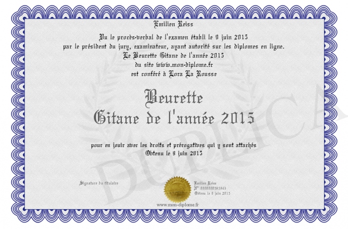 Envoyez par email votre Beurette Gitane de l'année 2015 personalisé