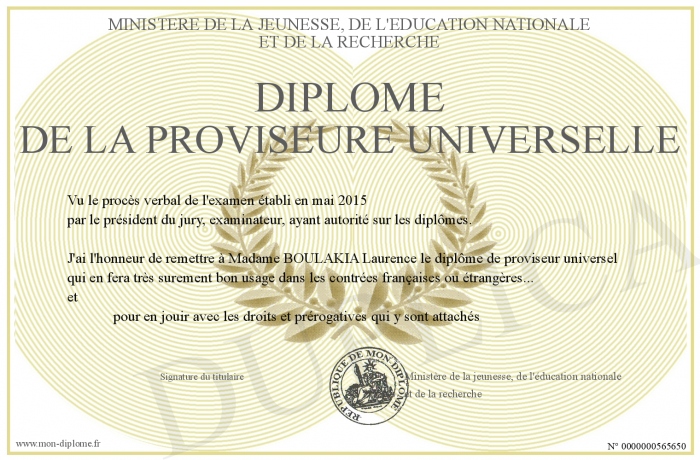 Envoyez par email votre Diplôme de la proviseure universelle personalisé