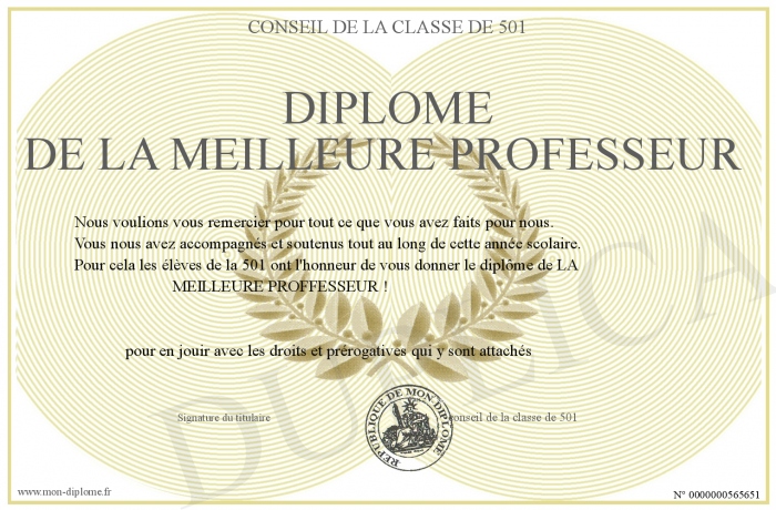 Envoyez par email votre Diplôme de la meilleure professeur personalisé