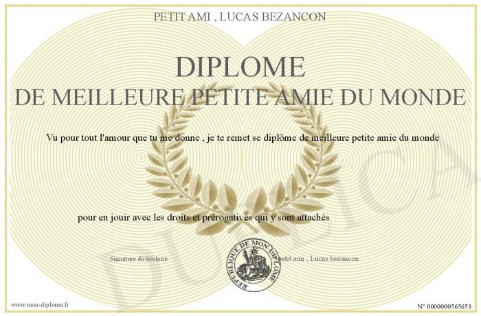 Envoyez par email votre Diplôme de meilleure petite amie du monde personalisé
