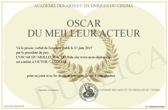 Envoyez par email votre OSCAR DU MEILLEUR ACTEUR personalisé