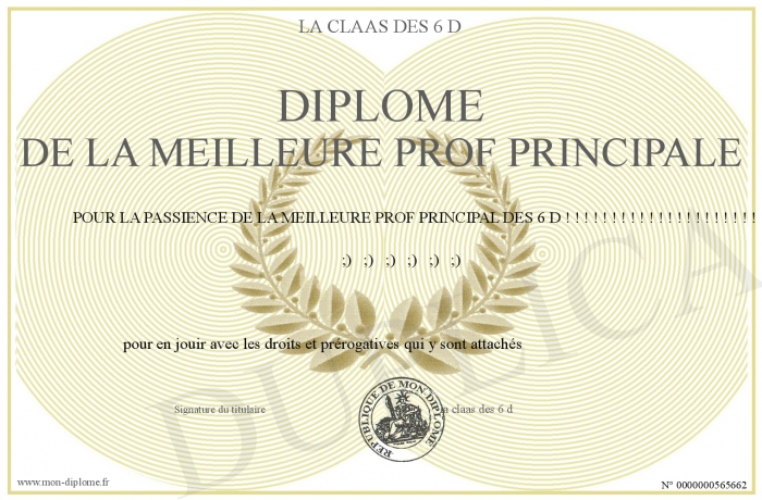 Envoyez par email votre Diplôme de la meilleure prof principale personalisé