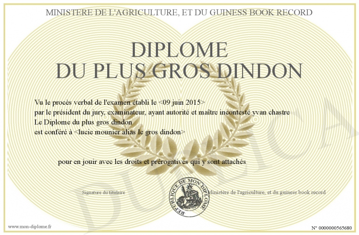 Envoyez par email votre Diplôme du plus gros dindon personalisé