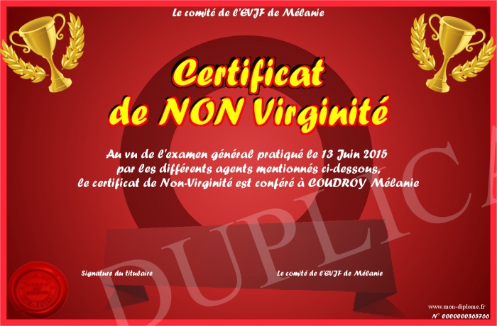 • Certificat de NON Virginité