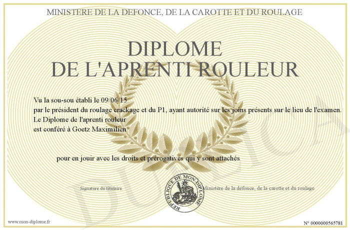 Envoyez par email votre Diplôme de l'aprenti rouleur personalisé