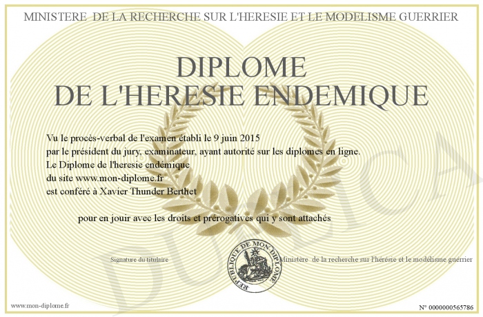 Envoyez par email votre Diplôme de l'heresie endémique personalisé