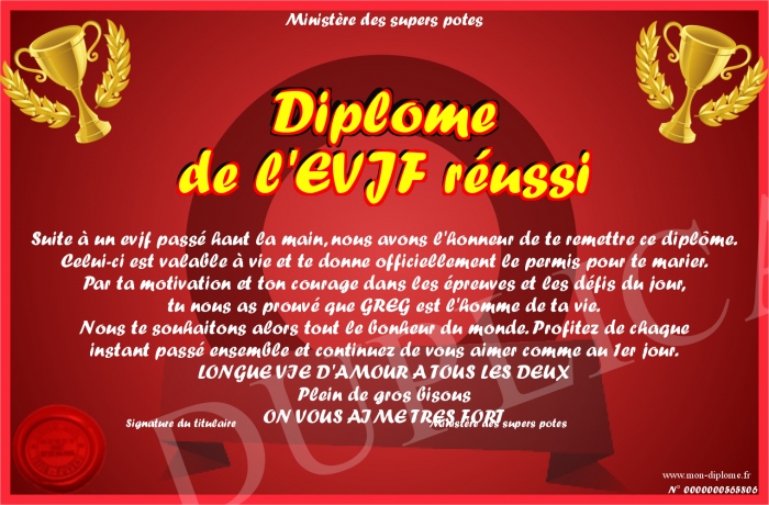 Envoyez par email votre Diplôme de l'EVJF réussi personalisé