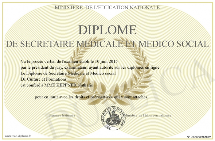 Envoyez par email votre Diplôme de Secrétaire Médicale et Médico social personalisé