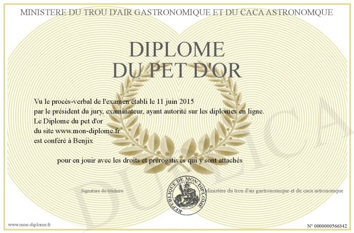 Envoyez par email votre Diplôme du pet d'or personalisé