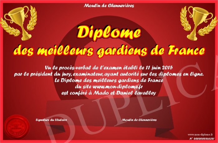 Envoyez par email votre Diplôme des meilleurs gardiens de France personalisé