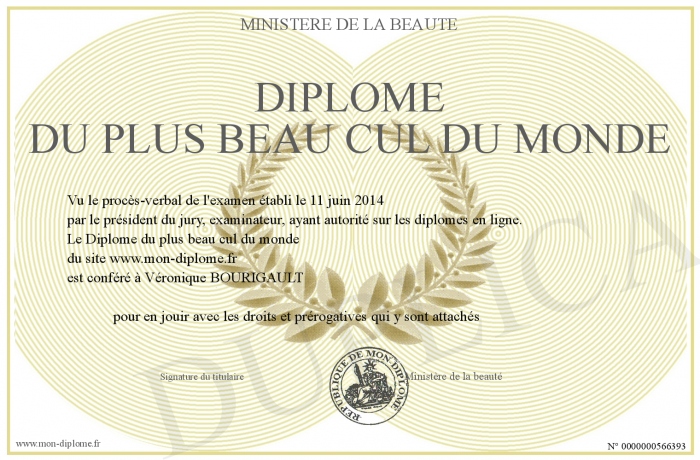 Envoyez par email votre Diplôme du plus beau cul du monde personalisé