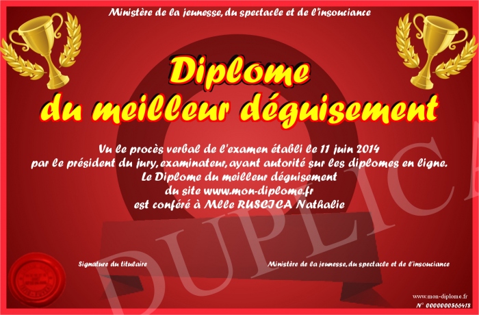 Envoyez par email votre Diplôme du meilleur déguisement personalisé