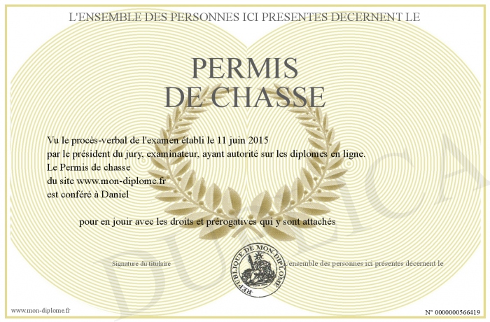 Envoyez par email votre Permis de chasse personalisé
