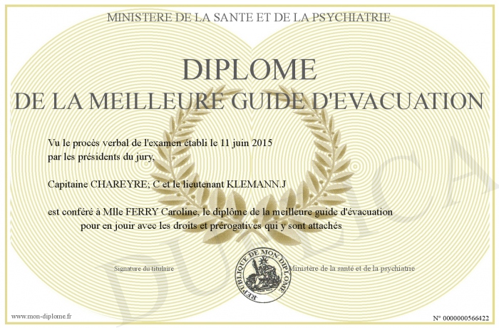 Envoyez par email votre Diplôme de la meilleure guide d'évacuation personalisé
