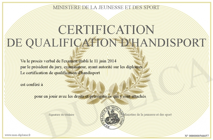 Envoyez par email votre certification de qualification d'handisport personalisé