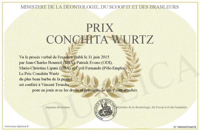 Envoyez par email votre Prix Conchita Wurtz personalisé