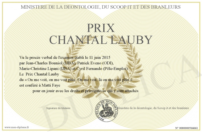 Envoyez par email votre Prix Chantal Lauby personalisé