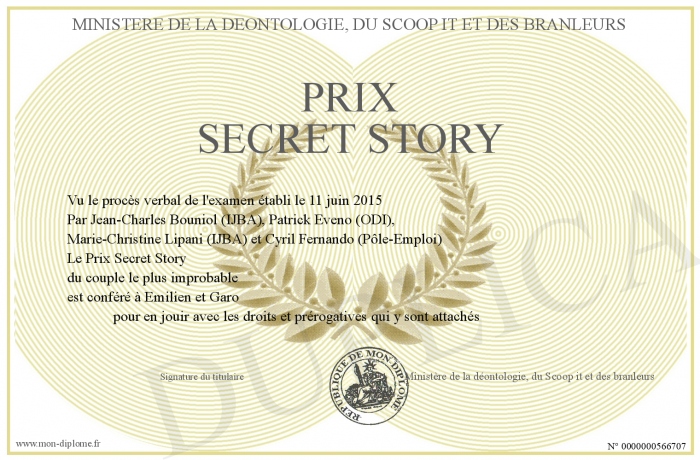 Envoyez par email votre Prix Secret Story personalisé