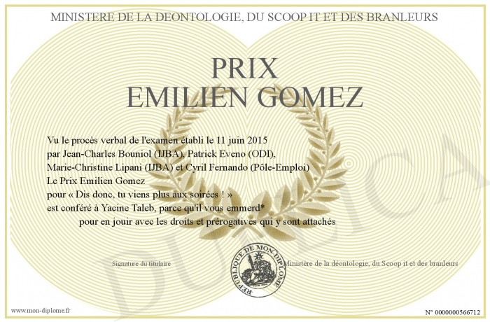 Envoyez par email votre Prix Emilien Gomez personalisé