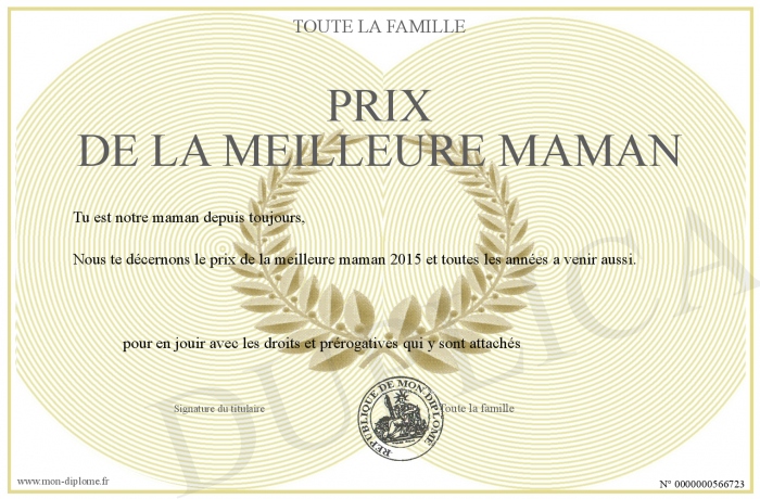 Envoyez par email votre PRIX DE LA MEILLEURE MAMAN personalisé