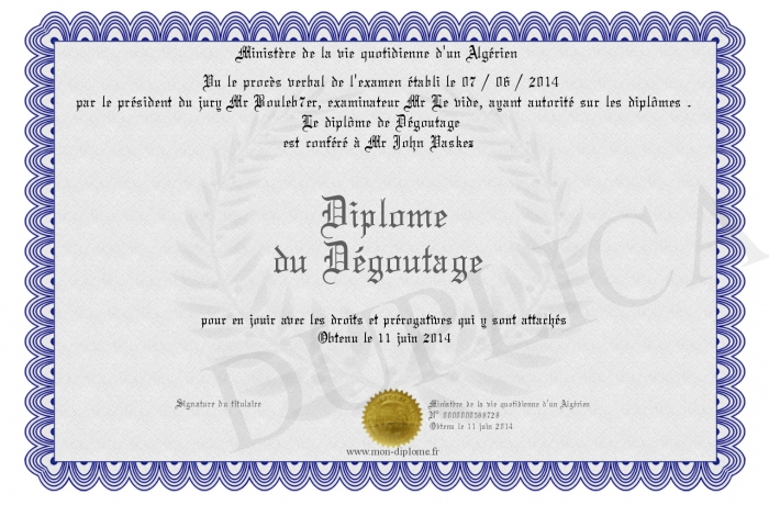 Envoyez par email votre Diplôme du Dégoutage personalisé