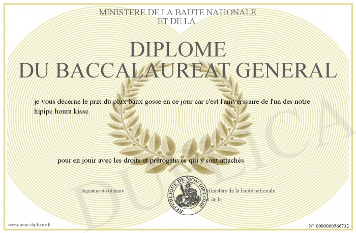 Envoyez par email votre Diplôme du baccalaureat général personalisé