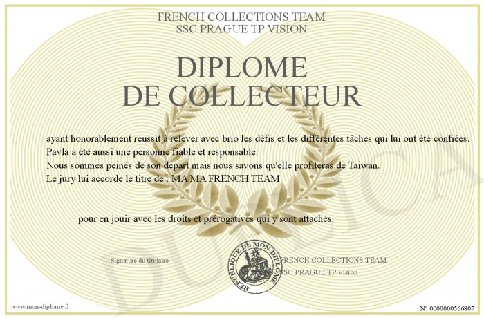 Envoyez par email votre Diplôme de collecteur personalisé