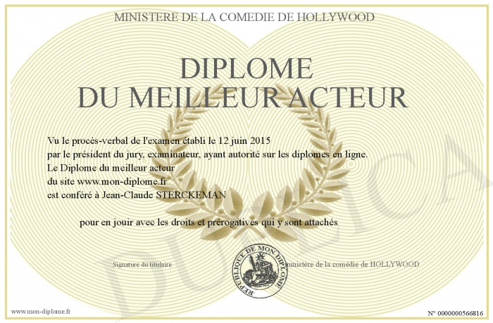 Envoyez par email votre Diplome du meilleur acteur personalisé