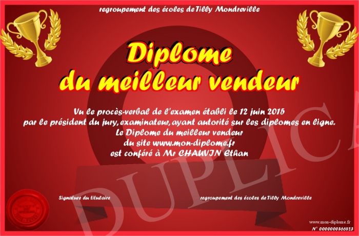 Envoyez par email votre Diplôme du meilleur vendeur personalisé