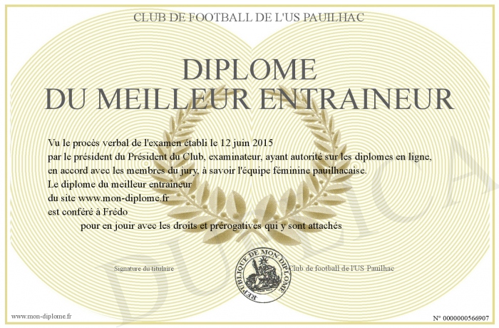 Envoyez par email votre Diplôme du meilleur entraineur personalisé