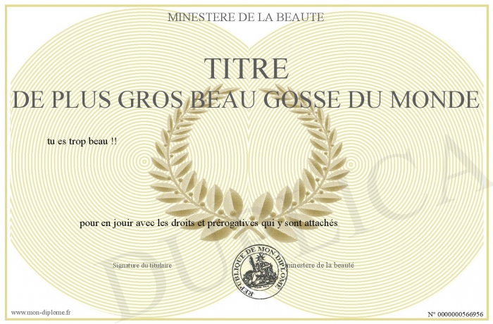 Envoyez par email votre titre de plus gros beau gosse du monde personalisé