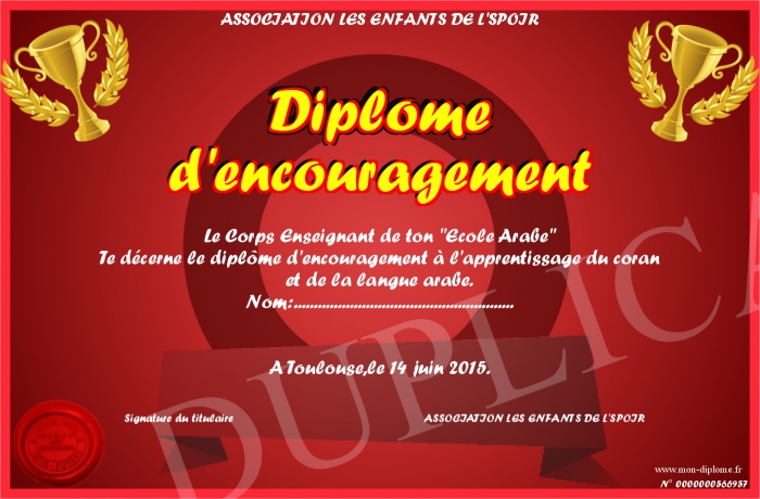 Envoyez par email votre Diplôme d'encouragement personalisé