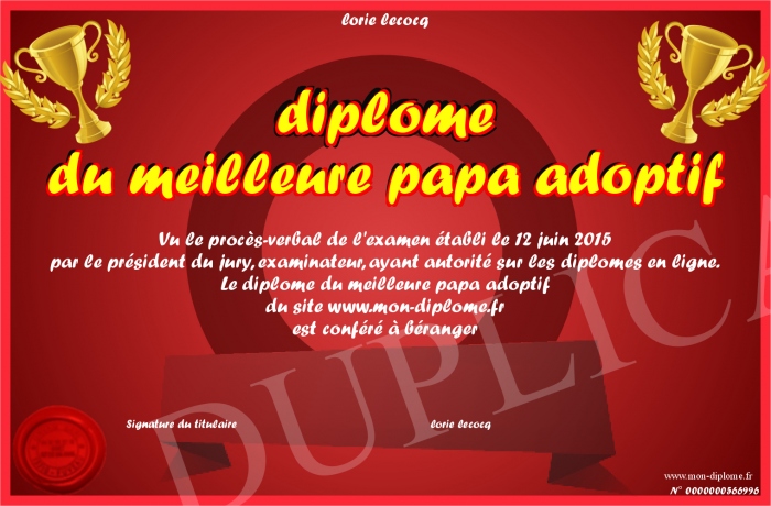 Envoyez par email votre diplome du meilleure papa adoptif personalisé