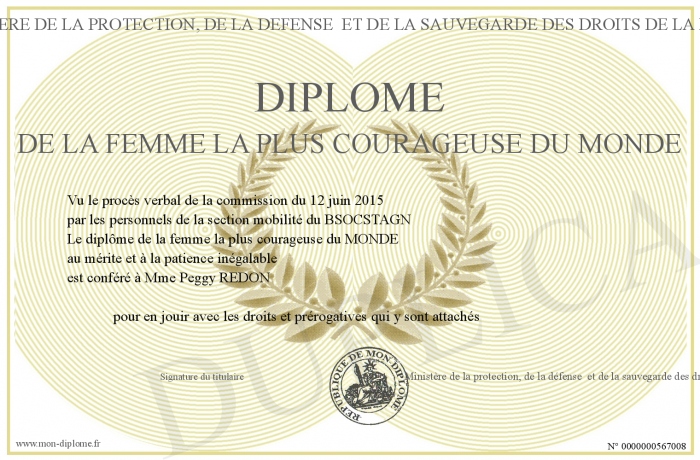 Envoyez par email votre Diplôme de la femme la plus courageuse du monde personalisé