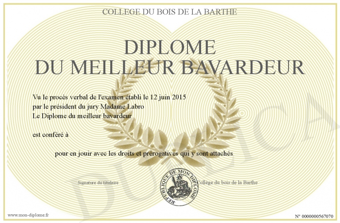 Envoyez par email votre Diplôme du meilleur bavardeur personalisé