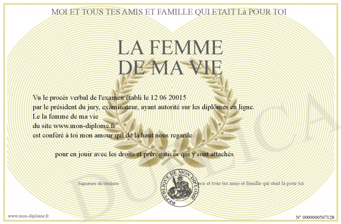 Envoyez par email votre la femme de ma vie personalisé