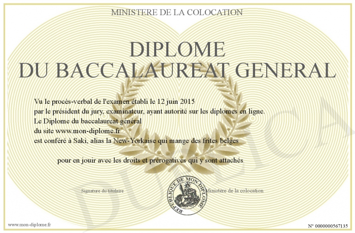 Envoyez par email votre Diplôme du baccalaureat général personalisé