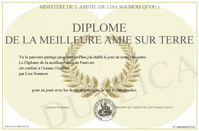Envoyez par email votre Diplôme de la meilleure amie sur terre personalisé