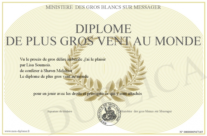 Envoyez par email votre Diplôme de plus gros vent au monde personalisé