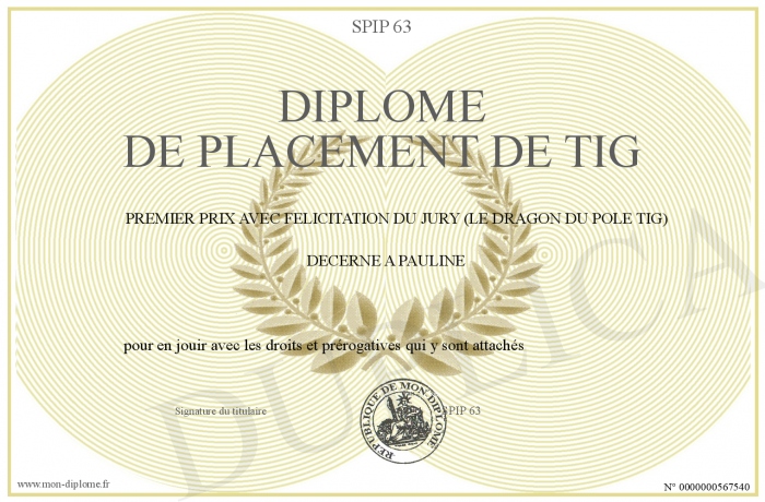 Envoyez par email votre Diplôme de placement de tig personalisé