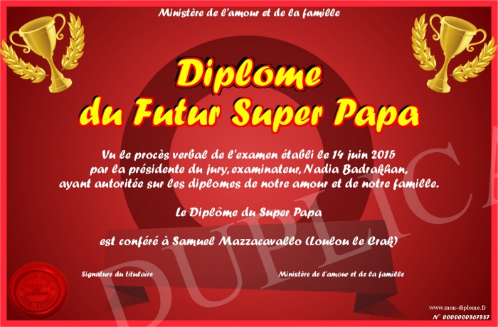 Envoyez par email votre Diplôme du Futur Super Papa personalisé