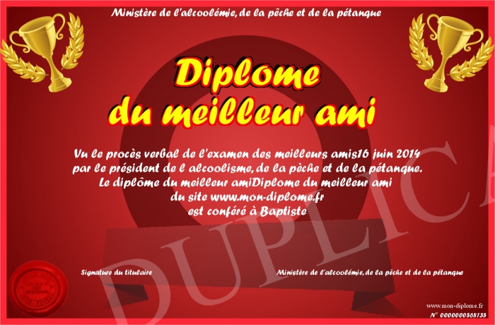 Envoyez par email votre Diplôme du meilleur ami personalisé