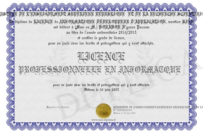 Envoyez par email votre LICENCE PROFESSIONNELLE EN INFORMATQUE personalisé