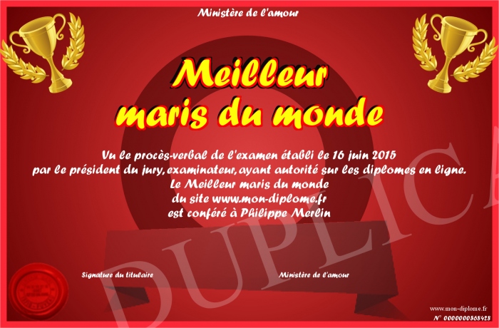 Envoyez par email votre Meilleur maris du monde personalisé