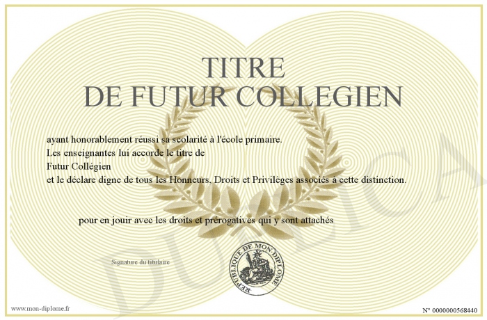 Envoyez par email votre Titre de Futur Collégien personalisé