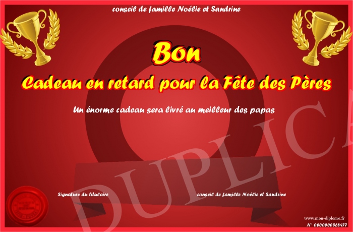 Envoyez par email votre Bon Cadeau en retard pour la Fête des Pères personalisé
