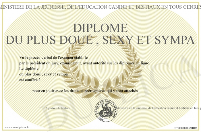 Envoyez par email votre Diplôme du plus doué , sexy et sympa personalisé