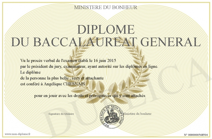 Envoyez par email votre Diplôme du baccalaureat général personalisé