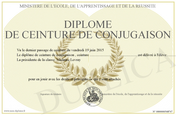 Envoyez par email votre diplôme de ceinture de conjugaison personalisé